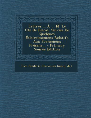 Read Lettres ... a ... M. Le Cte de Blacas, Suivies de Quelques Eclaircissemens Relatifs Aux Evenemens Presens... - Primary Source Edition Free Download Lettres ... a ... M. Le Cte de Blacas, Suivies de Quelques Eclaircissemens Relatifs Aux Evenemens Presens... - Primary Source Edition PDF Online or read online here in PDF or EPUB. Please click button to get PDF Kindle Lettres ... a ... M. Le Cte de Blacas, Suivies de Quelques Eclaircissemens Relatifs Aux Evenemens Presens... - Primary Source Edition book ...